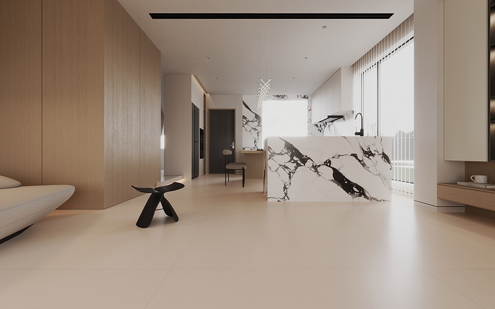自然純粹的奶杏底紋上漂浮著點點印記,是時光賦予的溫柔,在光與影的交相輝映間,營造靈動的蓬勃韻律。