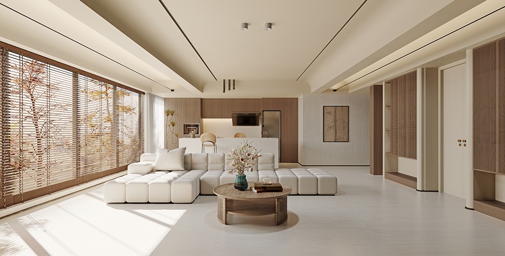 風起云涌,云卷云舒。每一抹紋理無限延展后都是淺灰磚面間朦朧的巧妙對接線,猶如黎明破曉前的天空令人著迷。