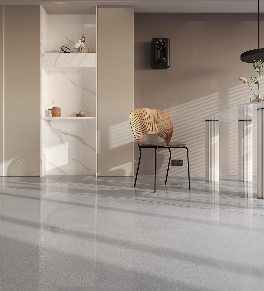 仿砂巖的設(shè)計(jì)配合鉆閃效果,為自然質(zhì)感增添一些亮點(diǎn),中灰色系低調(diào)冷靜,自帶砂巖硬朗的質(zhì)感,是現(xiàn)代家居中出彩的裝飾元素。