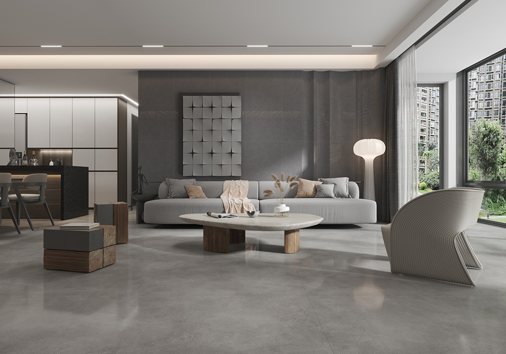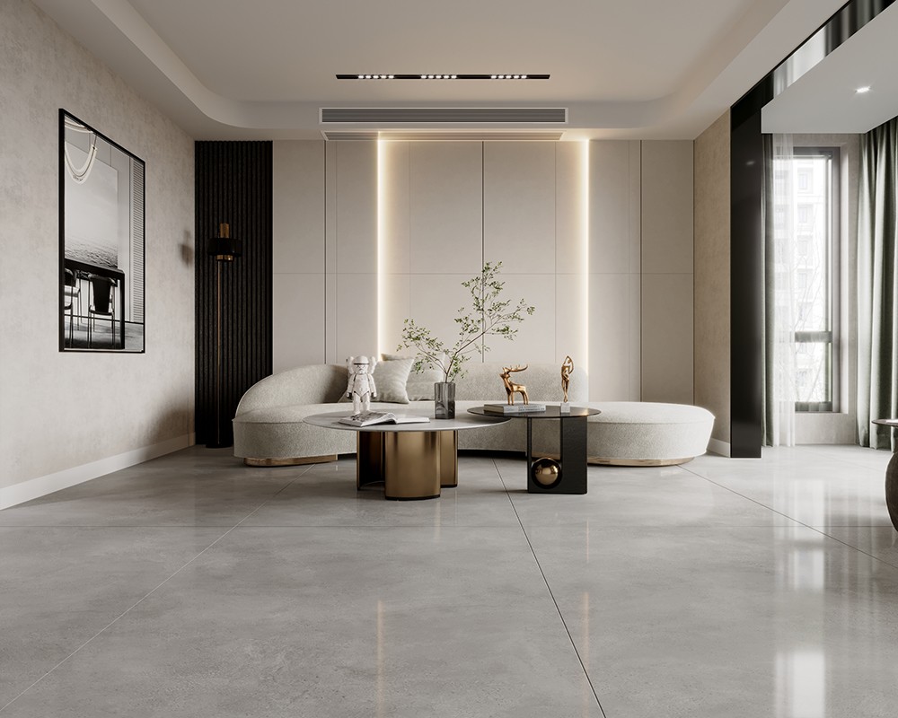 月光石層層幽幽的光暈浮動于磚面上,乳白色與銀灰色的線條紋理互相交織,仿似雨后初晴朦朧的月色,溫柔極致,營造舒適且溫和的氛圍,讓空間更有溫度。