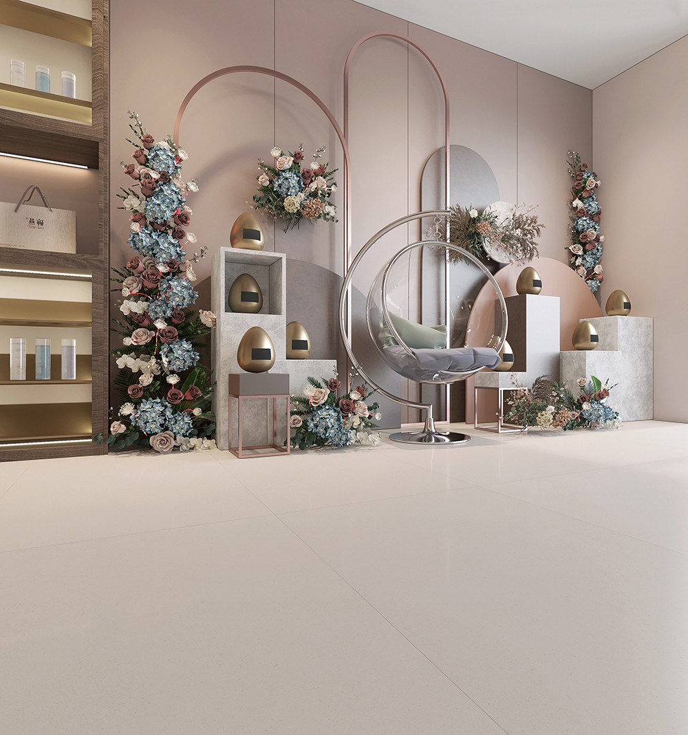 自然純粹的奶杏底紋上漂浮著點點印記,是時光賦予的溫柔,在光與影的交相輝映間,營造靈動的蓬勃韻律。