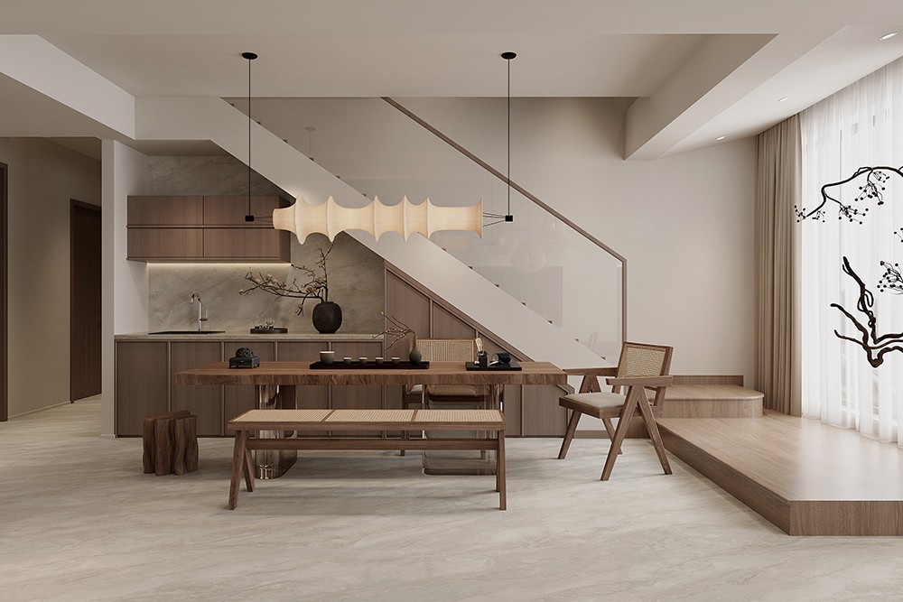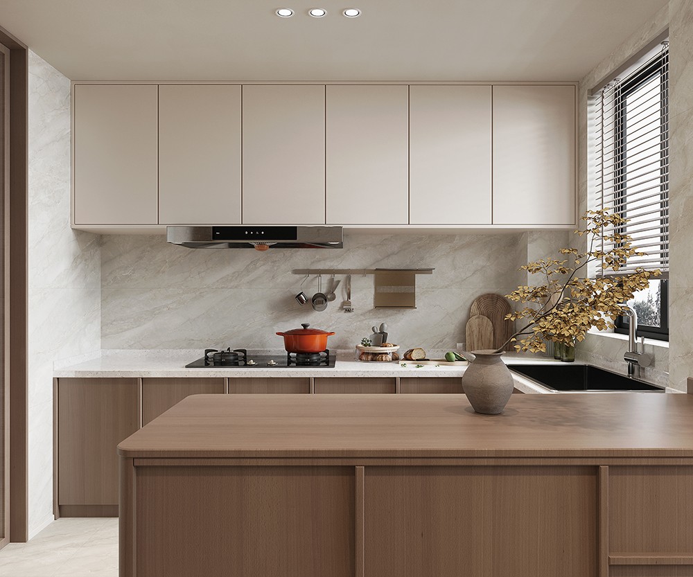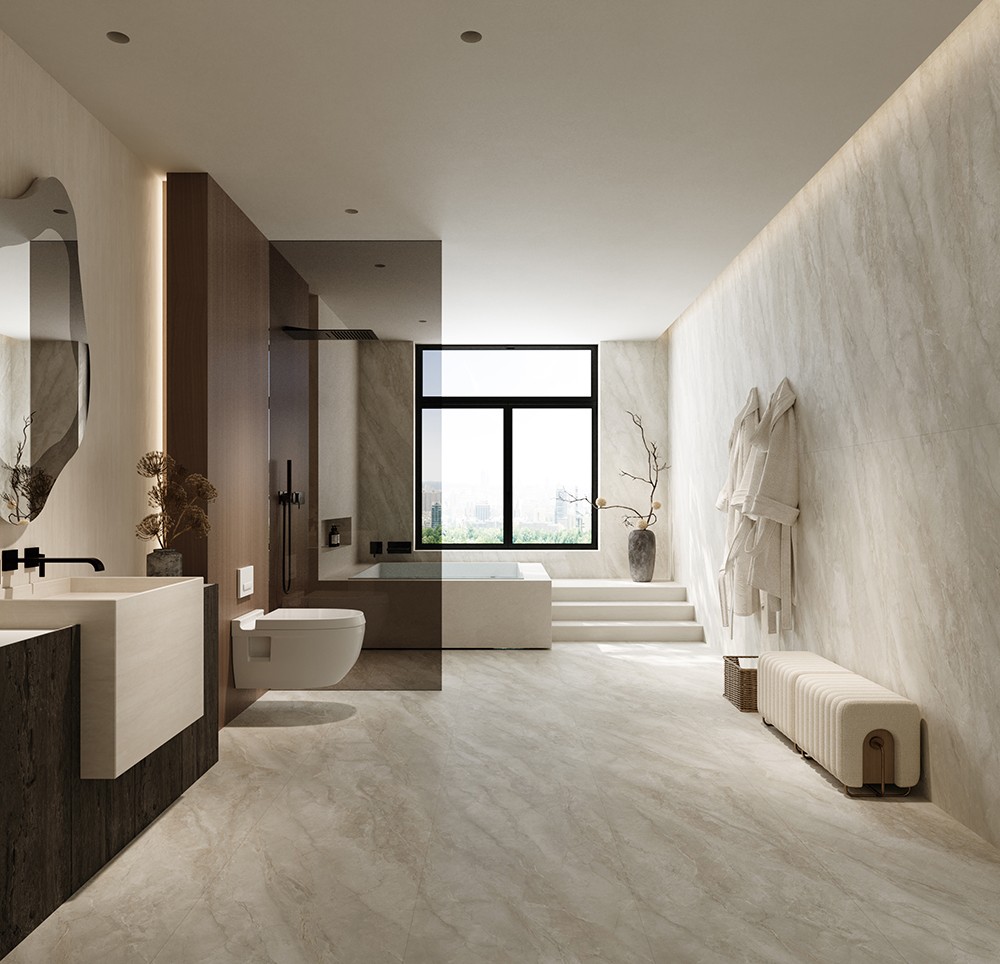 表面斜紋錯(cuò)落有致地鋪展,宛如大自然隨意揮灑的筆觸,行云流水,舒暢寫意,石材的自然氣息在空間中肆意揮灑。