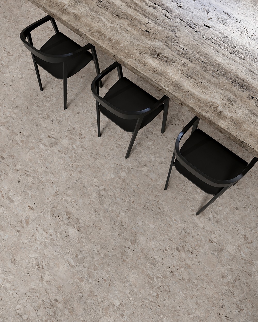 銀灰大顆粒石紋,柔和灰色磚面上滿布不規則的顆粒色塊,沉穩而不失雅致。