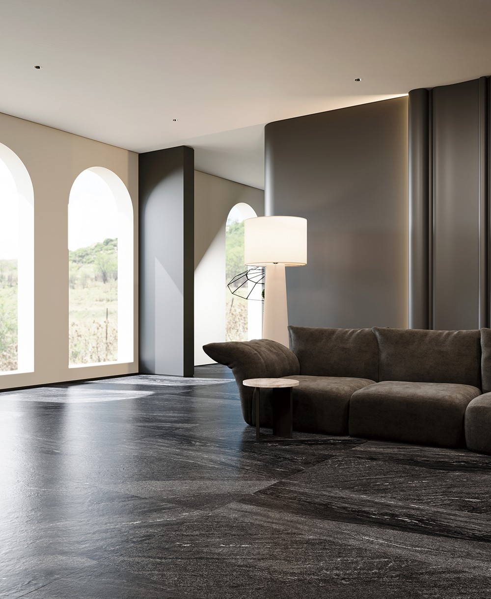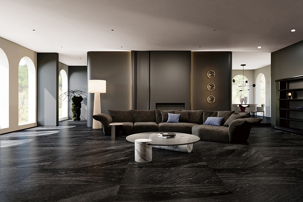 深淺交織將自然的磅礴與細膩凝固在方寸之間,紋理如同風雨侵蝕下形成的獨特地貌,流暢而富有變化,深黑色澤自帶現代時尚感。