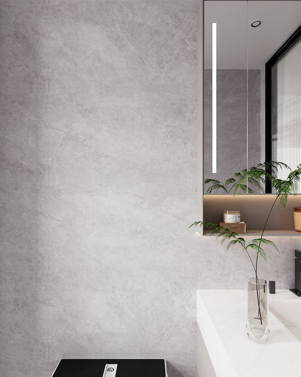 以灰色為底色,巧妙點綴金色細線,細膩的紋理如同自然石紋蜿蜒交錯。整體花色簡約而優雅,融合了自然美感與精致細節。