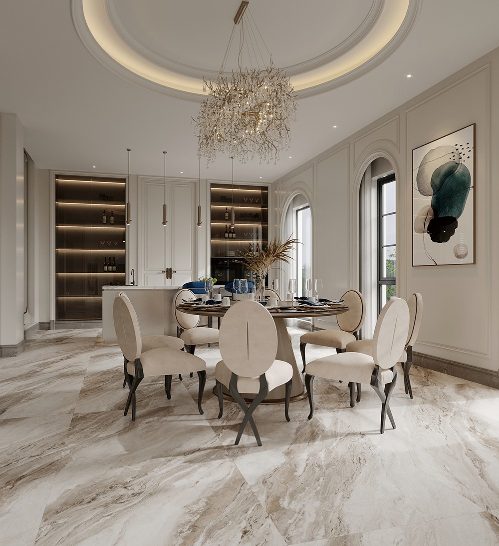 柔和的米黃色調,恰似溫陽傾灑。紋路粗獷大氣,展現出自然石材的精致神韻與藝術張力。