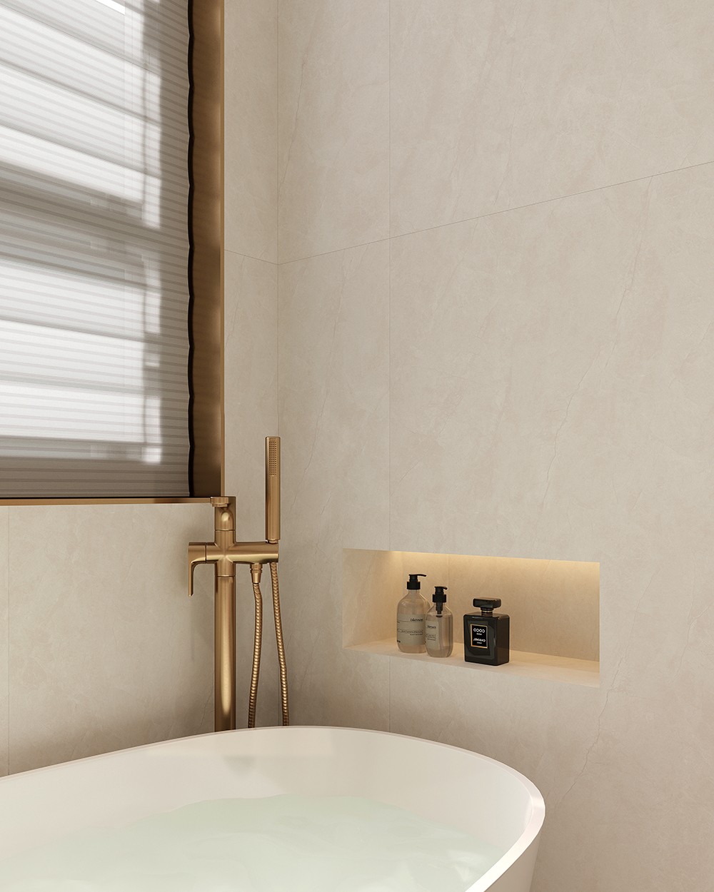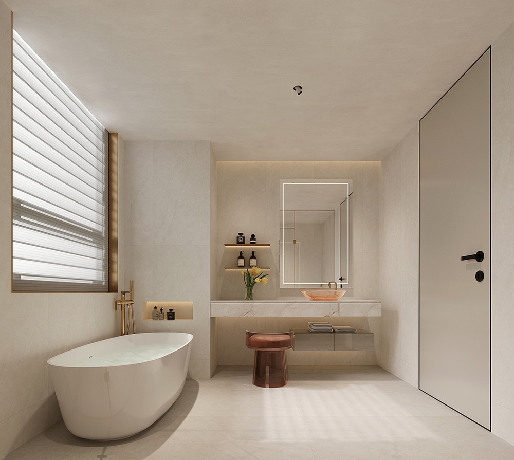 以灰白為底色,巧妙地利用淺灰色線條在磚面上勾勒出縱橫交錯的紋理,仿佛山脈延綿的自然曲線,既流暢又充滿韻律感。