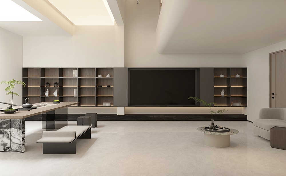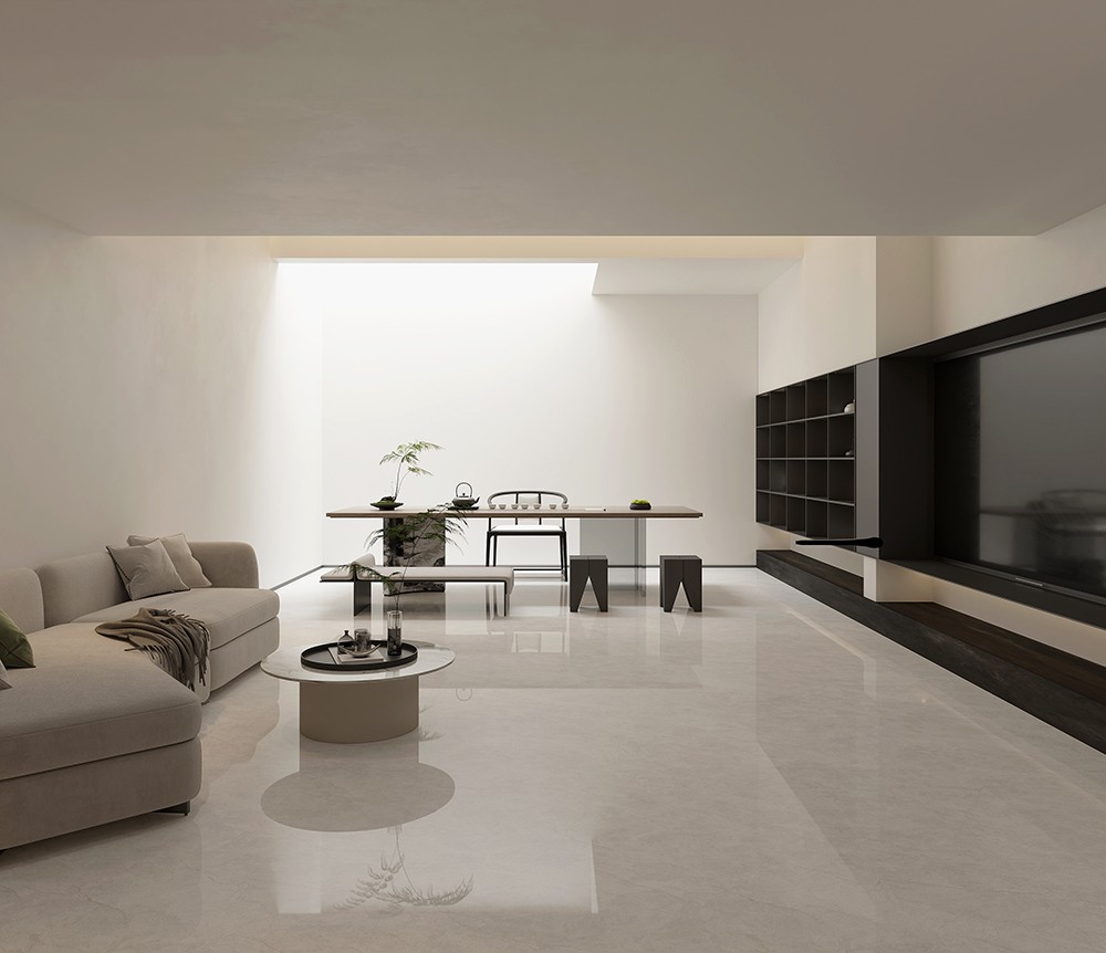 柔和的白色磚面點綴著細密的灰色線條,分布自然,呈現出溫和且富有層次的視覺效果,彰顯純凈而質樸的質感。