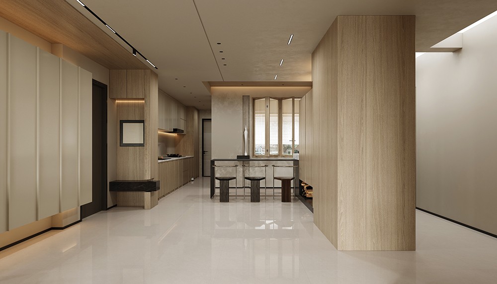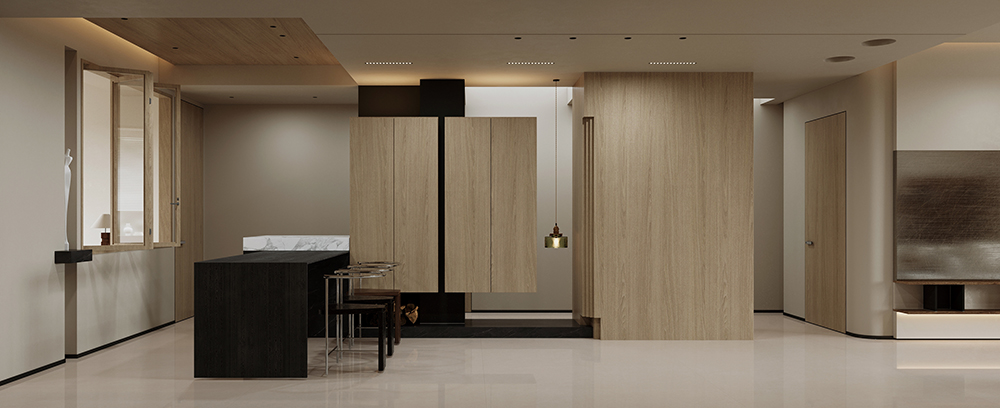 以極簡的素色質感為基調,米灰色底中隱約顯現柔和的自然細紋,其細膩紋理仿若微風輕拂水面,泛起微微漣漪。